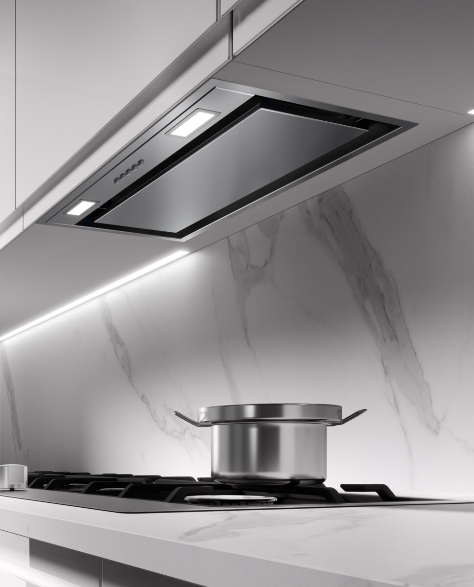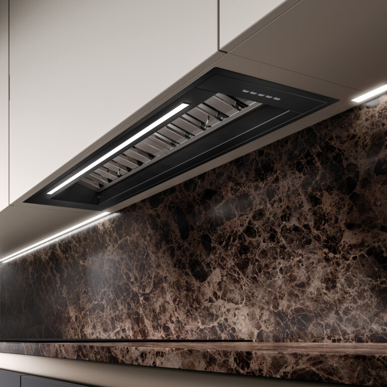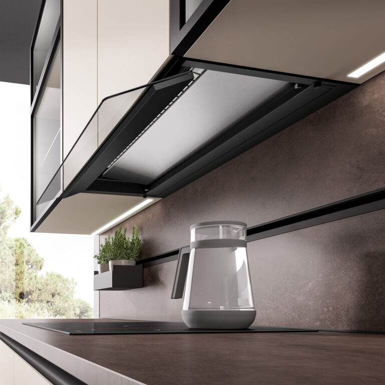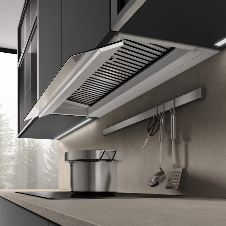 Con le sue linee semplici e pulite grazie al pannello perimetrale e al filtro grassi nascosto, HELIOS