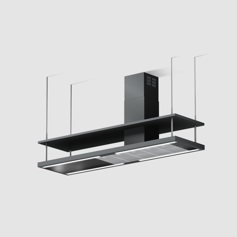 Chic Kuba è la cappa a isola che si adatta a qualsiasi cucina; in acciaio verniciato, disponibile in più colori, e progettata per versione filtrante con prestazioni potenti e silenziose.