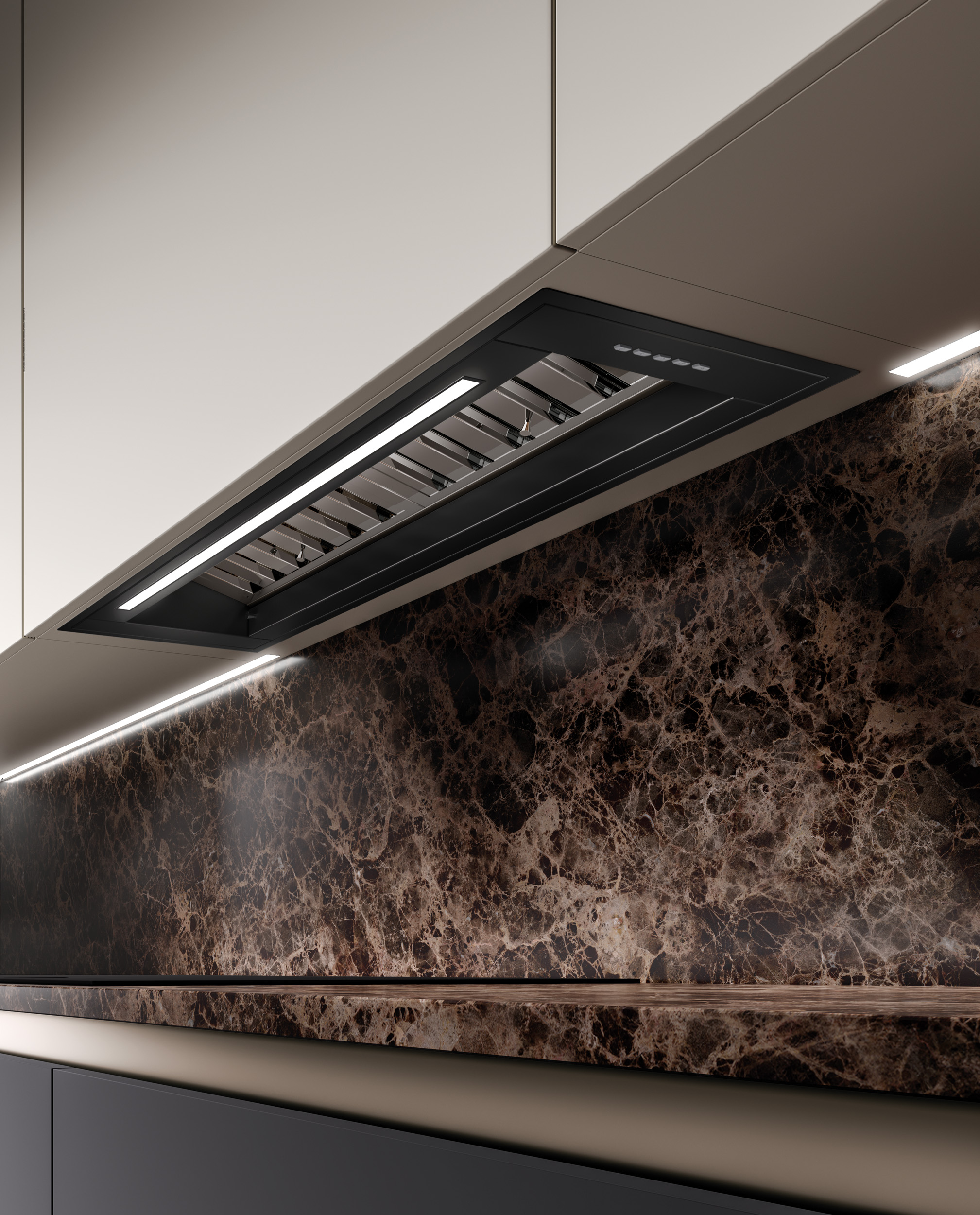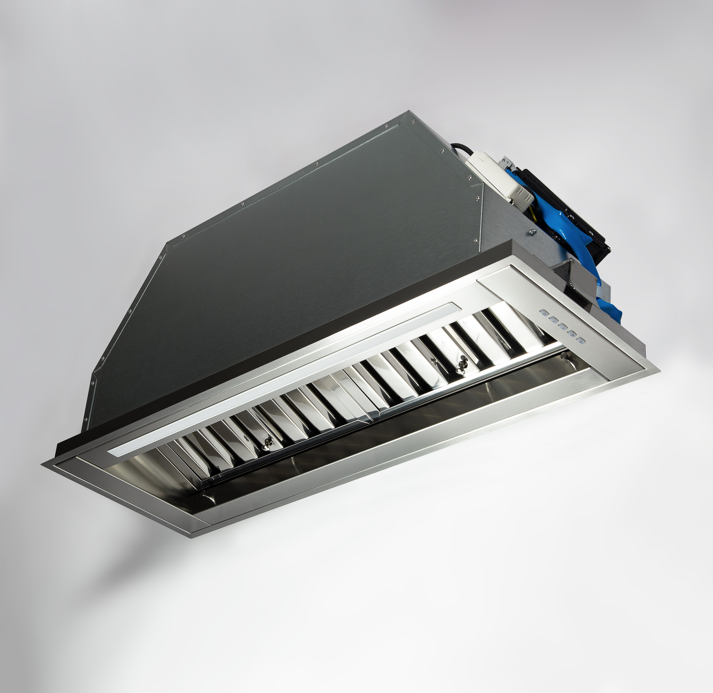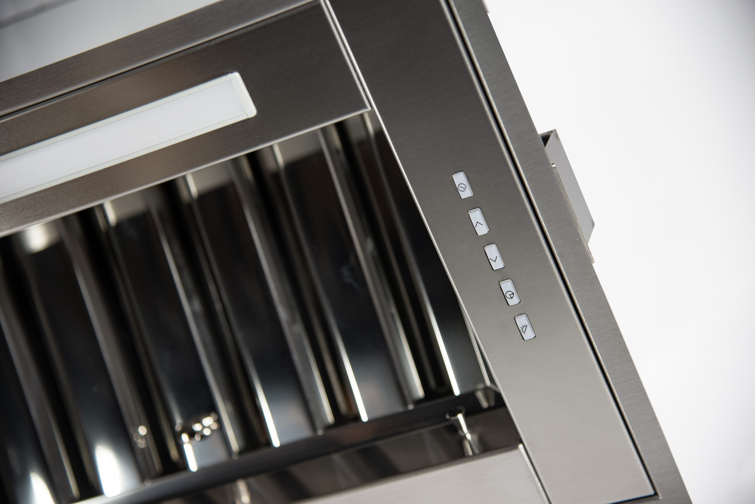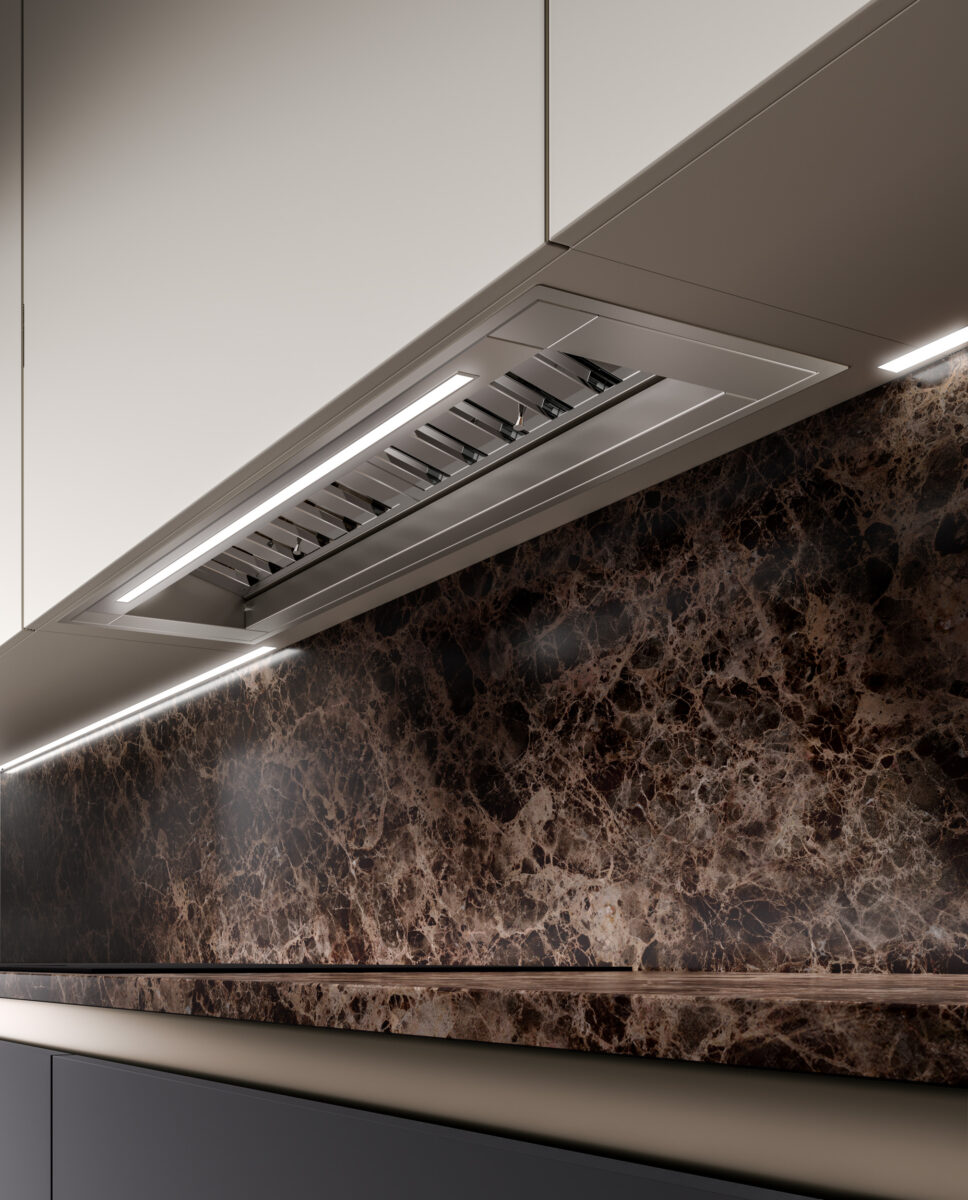 Tutta la potenza di una cappa semi-professionale, nessun ingombro.