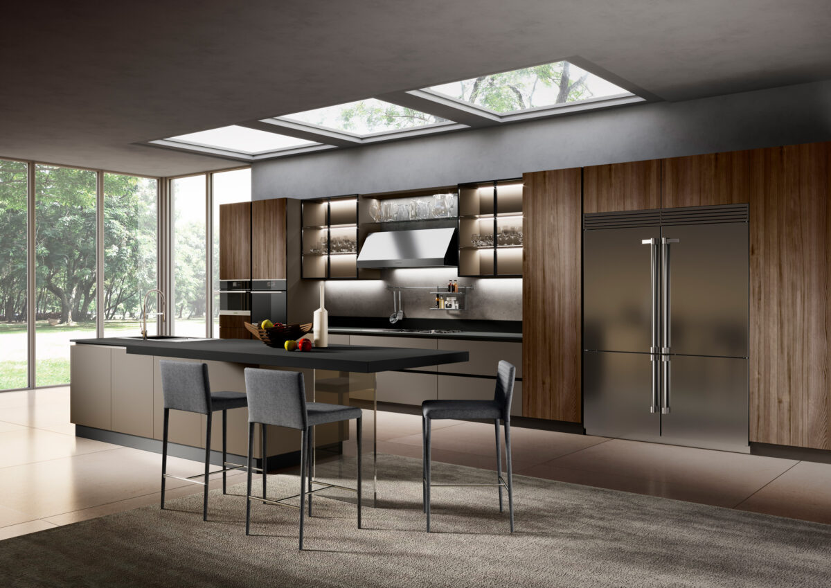 PROFESSIONAL B1 è dotata di filtri baffle e raccogli liquidi, illuminazione a LED integrata per una luce perfetta sui fornelli. Disponibile in due finiture (acciaio inox o verniciata nera) e in tre misure, inclusa la versione XL da 160 cm per cucine spaziose.