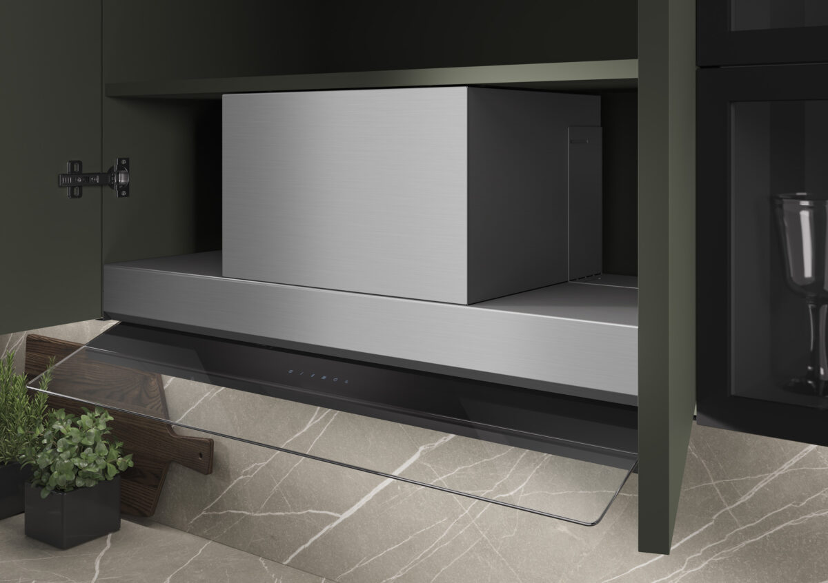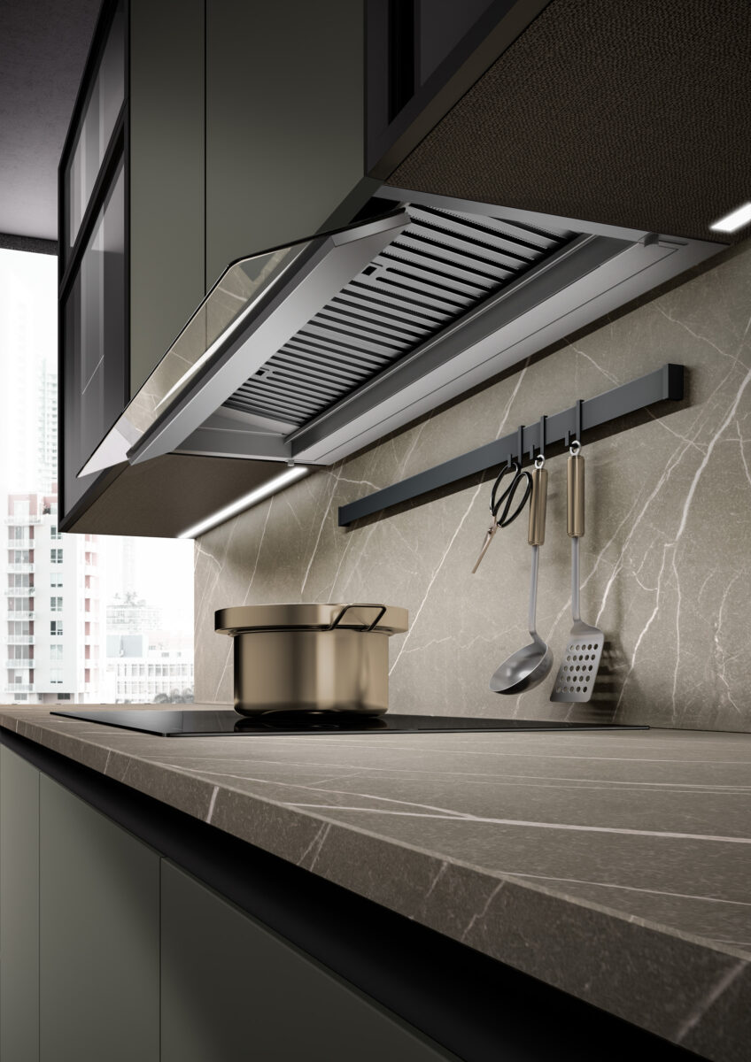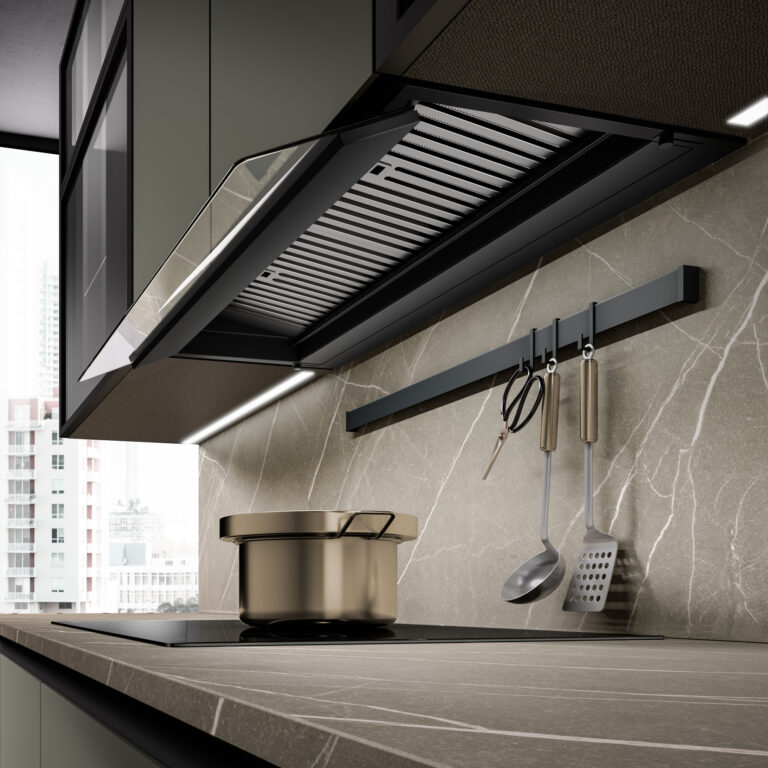 THESY 2.0 con su estructura sólida y compacta y su sistema de instalación rápida, se integra perfectamente en los muebles, adaptándose a cualquier estilo de cocina.